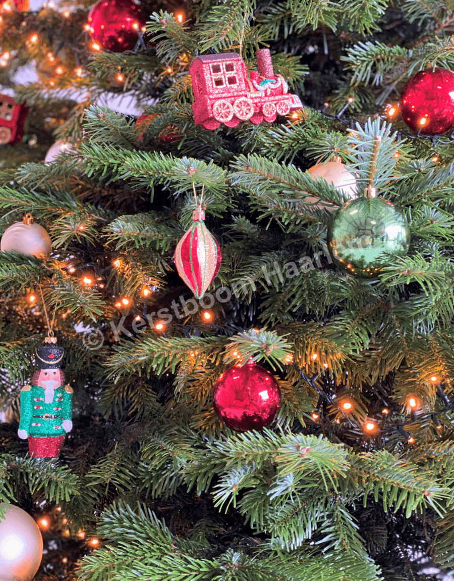 Champagne tones, pine green and classic Christmas red form the basis of this timeless Christmas tree. Hermitage exudes nostalgia and warm festivity. Think stately nutcrackers, nostalgic trains, sparkling pendants and luxurious baubles in classic shapes. A tree reminiscent of cosy family traditions and atmospheric togetherness. Is this your ultimate Christmas feeling? Then this is your Christmas tree!